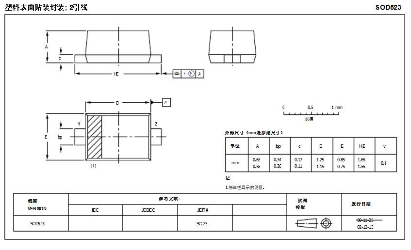 在SOD523平面肖特基势垒二极管( SC - 79 )超小型SMD塑料包装。