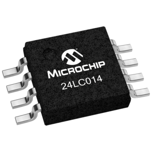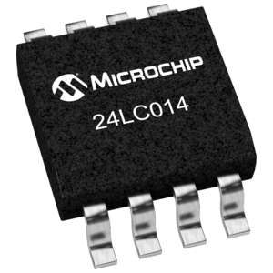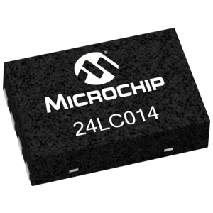The Microchip Technology Inc. 24LC014 is a 1Kb Serial EEPROM with operation down to 2.5V. The device is organized as a single block of 128 x 8-bit memory with a 2-wire serial interface. Low-current design permits operation with typical standby and active currents of only 1 µA and 1 mA, respectively. The device has a page write capability for up to 16 bytes of data. Functional address lines allow the connection of up to eight 24LC014 devices on the same bus for up to 8 Kbits of contiguous EEPROM memory. The device is available in the standard 8-pin PDIP, 8-pin SOIC (150 mil), TSSOP, 2x3 DFN and TDFN and MSOP packages.