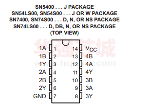 74LS00 从属于TTL门系列.它是一个内部含有四个双输入的与非门芯片.其14脚接+5v电压;7脚地;