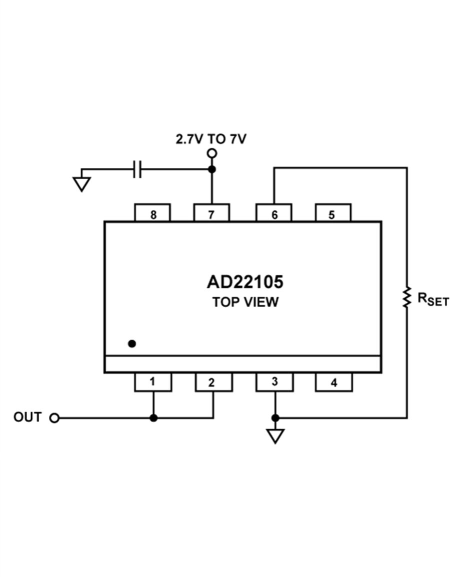 AD22105设计采用+2.7 V至+7.0 V的单电源供电,适合在电池供电应用和工业控制系统中工作。由于功耗很低(3.3 V电源电压下仅230 µW),自热误差极小,电池寿命得以最大程度地延长。