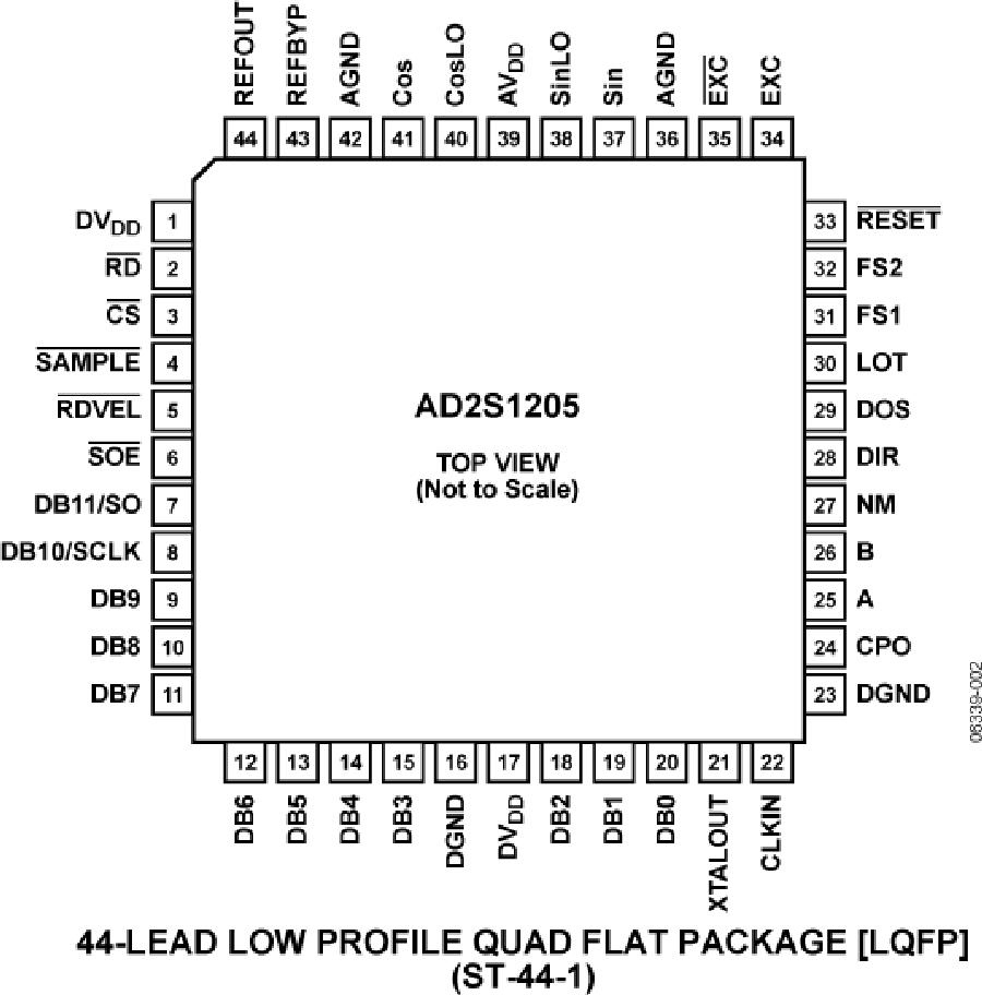 AD2S1205是一款完整的12位分辨率跟踪分解器数字转换器,内置可编程正弦波振荡器,为分解器提供正弦波激励。转换器的Sin和Cos输入端支持3.15 V p-p ± 27%的输入信号。Type II跟踪环路可用于跟踪输入信号,并将Sin和Cos输入端的信息转换为输入角度和速率的所对应的数字量。最大跟踪速率是外部时钟频率的函数。AD2S105的工作频率范围为8.192 MHz ± 25%,最大跟踪速率为1250 rps。