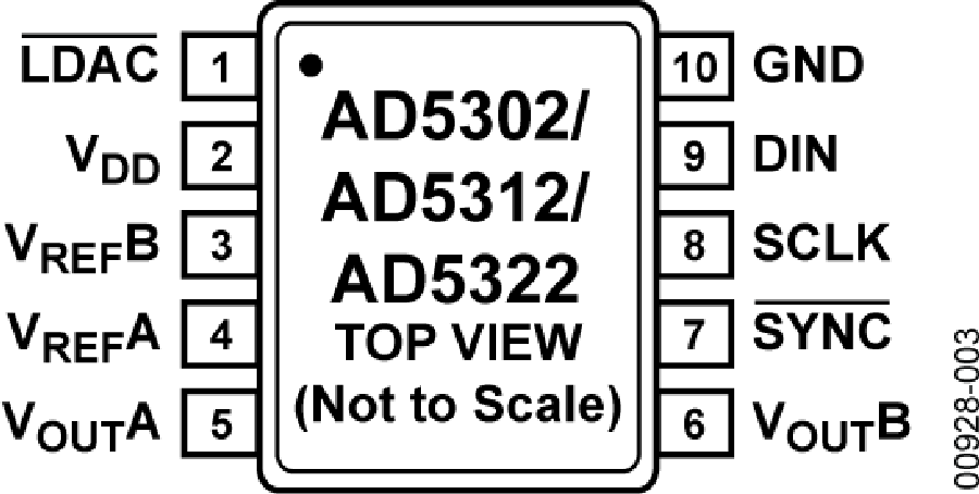 采用轨到轨方式工作的输出缓冲放大器,通过LDAC引脚(低电平有效)同时更新DAC输出