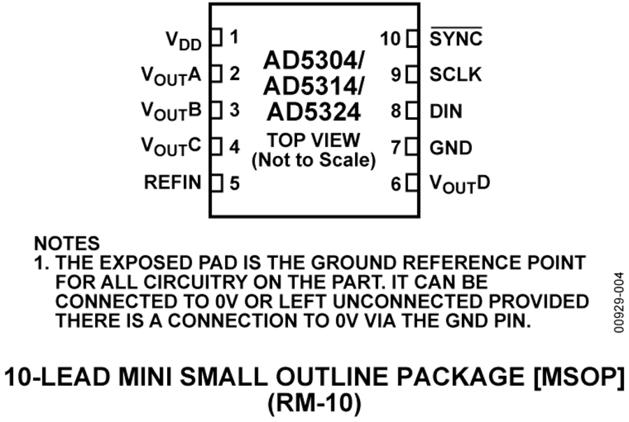 AD5304/AD5314/AD5324分别是四通道8/10/12位、缓冲电压输出DAC,提供10引脚MSOP和10引脚LFCSP封装,采用2.5 V至5.5 V单电源供电,3 V时功耗为500 µA。这些器件内置片内输出放大器,能够实现轨到轨输出摆幅,压摆率为0.7 V/µs。所用的三线式串行接口能够以最高30 MHz的时钟速率工作,并与标准SPI、QSPI、MICROWIRE、DSP接口标准兼容。