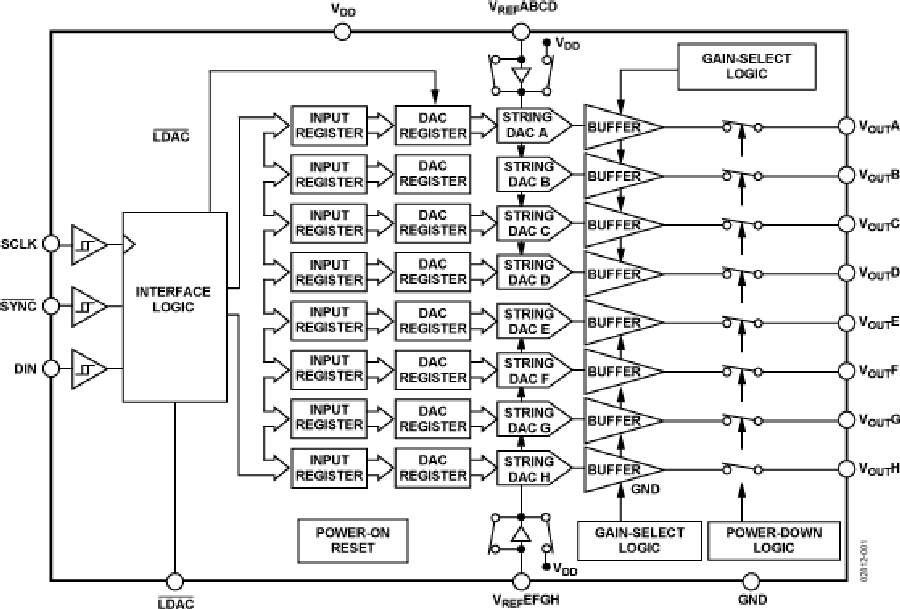 AD5328:一个16引脚TSSOP封装中集成8个缓冲12位DAC,A级:±16 LSB INL,B级:±12 LSB INL