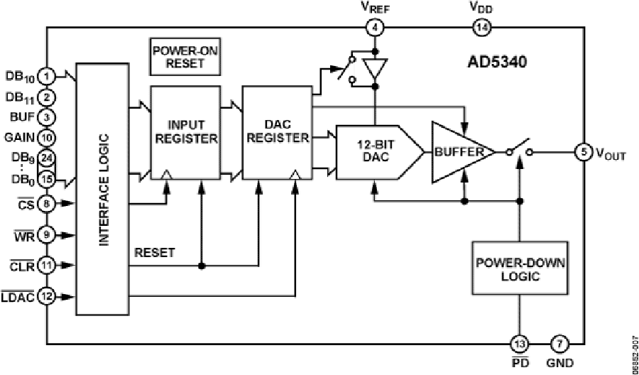 通过GAIN引脚,可将输出范围设置为0 V至VREF或0 V至2 × VREF。