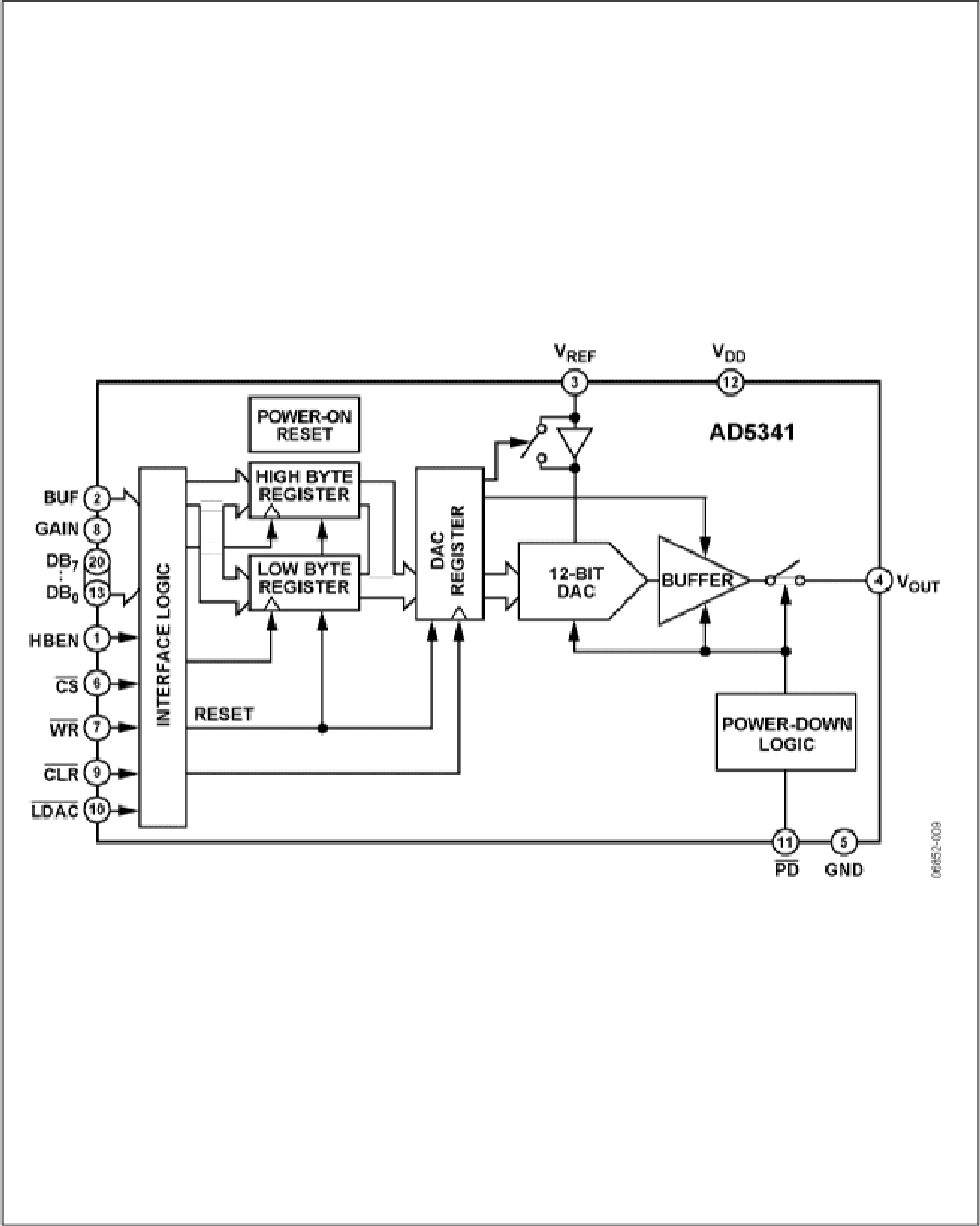 这些DAC的输入数据要经过双缓冲,因而利用 LDAC 引脚可以同时更新系统中的多个DAC。