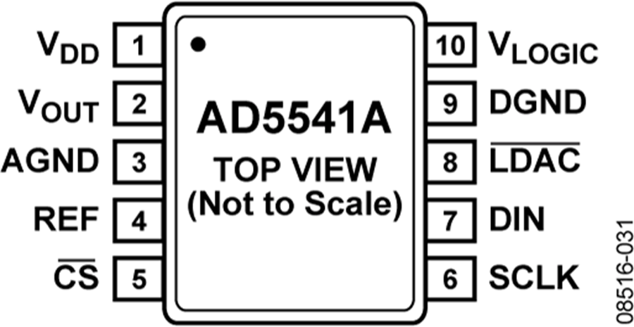 AD5541A采用多功能三线式接口,并且与50 MHz SPI、QSPI™、MICROWIRE™、DSP接口标准兼容。