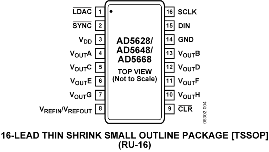 低功耗,最小的引脚兼容、八通道DACAD5668: 16位AD5648: 14位AD5628: 12位