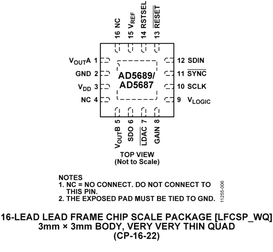 AD5689/AD5687采用多功能SPI接口,时钟速率最高达50 MHz,并均包含一个为1.8 V/3 V/5 V逻辑电平准备的VLOGIC引脚。