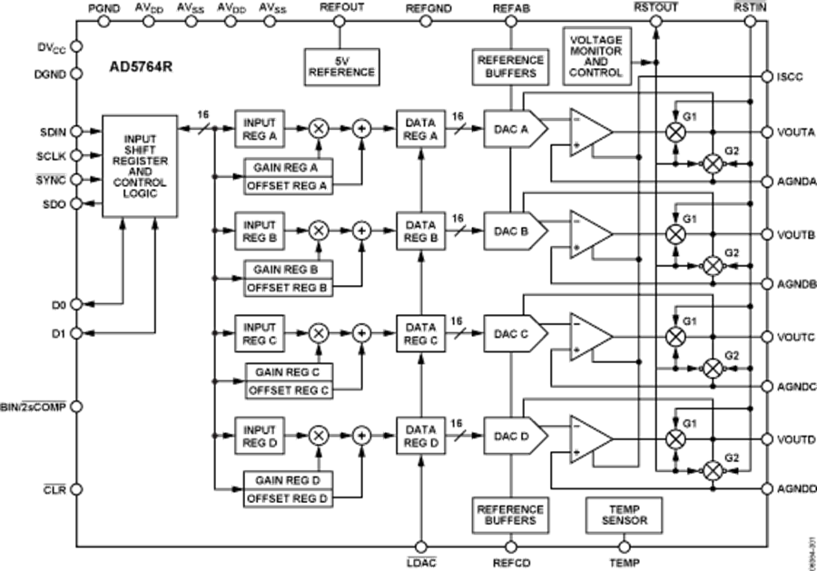AD5764R基于iCMOS®技术平台,它可为工业/仪器设备OEM的模拟系统设计师提供能在较高电压下工作的高性能IC基于该平台能够开发出可采用30 V电源、工作电压为±15 V的模拟IC,同时可降低功耗、缩小封装尺寸并提升交流与直流性能。