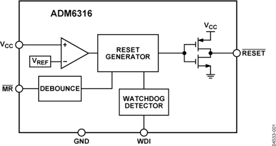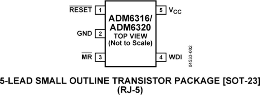 ADM6316/ADM6317/ADM6318/ADM6319/ADM6320/ ADM6321/ADM6322采用5引脚SOT-23封装,功耗典型值仅为3 μA,适用于低功耗、便携式应用。