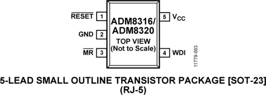 ADM8316/ADM8318/ADM8319/ADM8320/ADM8321/ADM8322采用5引脚SOT-23封装,功耗典型值仅为10 µA,适用于低功耗、便携式应用