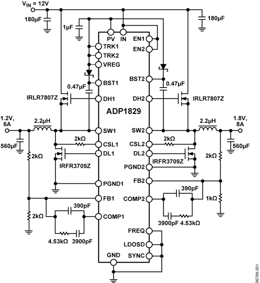 ADP1829的额定温度范围为−40°C至+125°C结点温度范围,采用32引脚LFCSP封装。