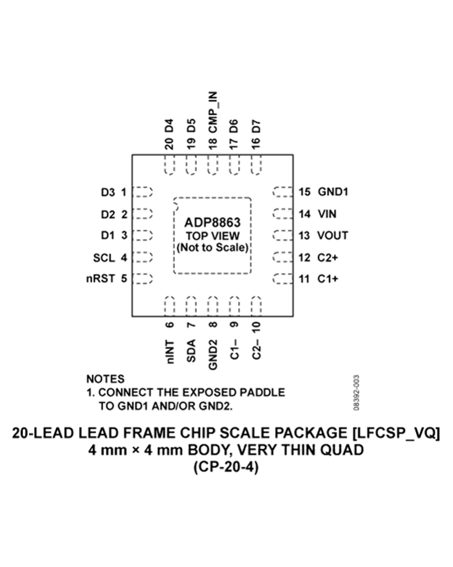 ADP8863采用紧凑型LFCSP封装(引脚架构芯片级封装)。