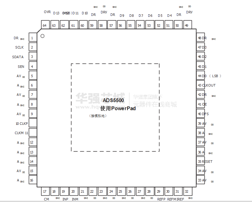 该ADS5500是在一个64引脚TQFP使用PowerPad封装,规定工作的整个温度范围内-40 ° C至+ 85°C 。