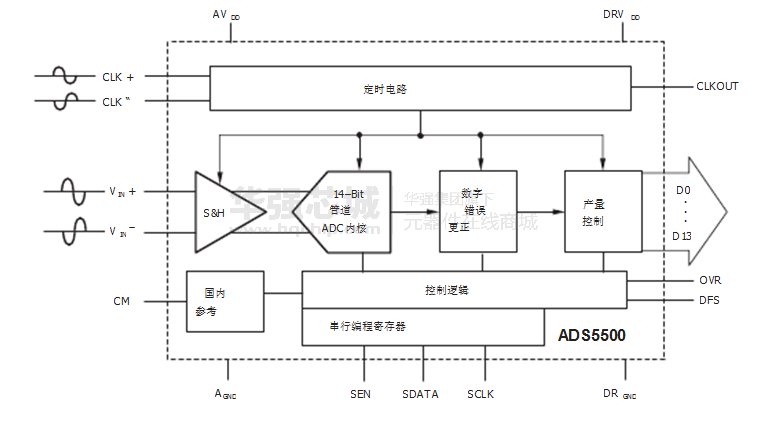14位125MSPS模拟数字转换器。