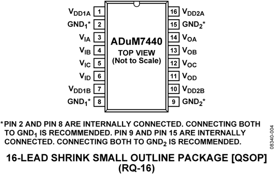 ADuM744x是基于ADI公司iCoupler®技术的四通道数字隔离器系列。这些隔离器结合了高速CMOS和单片空芯变压器技术,可提供出色的性能特性,优于光耦器件和其它集成式耦合器。ADuM7444x系列四通道1kV数字隔离器件采用小型16引脚QSOP封装。大部分四通道隔离器的封装形式为16引脚SOIC宽体封装,而相比之下,ADuM7444x可节省几乎70%的电路板空间,却仍能耐受高隔离电压,以及满足诸如UL和CSA标准(正在审批中)等法规需求。除了节省空间之外,ADuM744x的价格要低于2.5kV或5kV隔离器,适用于仅需基本隔离的应用场合。