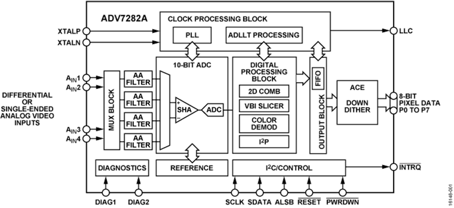 The ADV7282A is a versatile one-chip, multiformat video decoder that automatically detects standard analog baseband video signals and converts them into YCrCb 4:2:2 component video data streams.