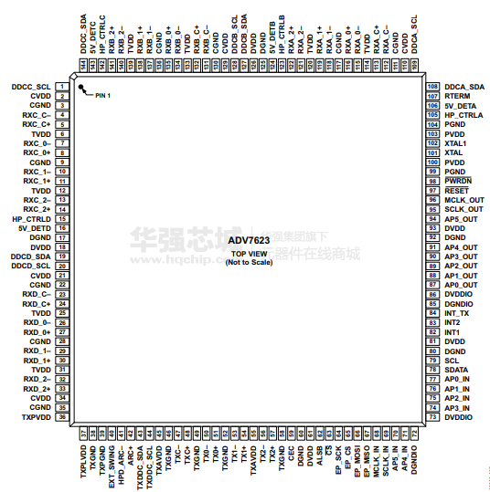 ADV7623由先进的CMOS工艺制造,采用144引脚20 mm × 20 mm无铅LQFP封装,额定温度范围为-20 ℃至+70℃。