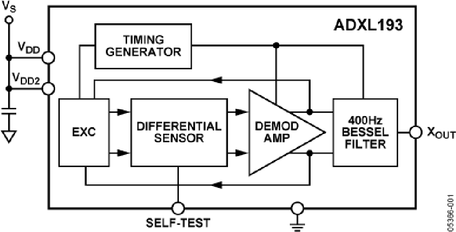 ADXL193是一款小尺寸(5 mm x 5 mm x 2 mm陶瓷LCC封装)、低功耗(5 V时功耗为1.5 mA)、单轴、高giMEMS®加速度计,专为检测±120g或±250g冲击和振动而设计。提供三种型号,包括AD22282-A-R2 (±120g)和AD22283-B-R2 (±250g)。这三种产品可用于各种碰撞/冲击检测应用,包括汽车安全气囊碰撞检测系统以及医疗、工业和运动设备。应用: