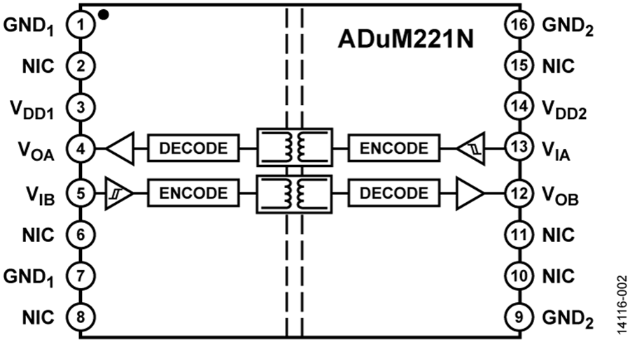 ADuM221N1与ADuM2201 RW-16封装引脚兼容