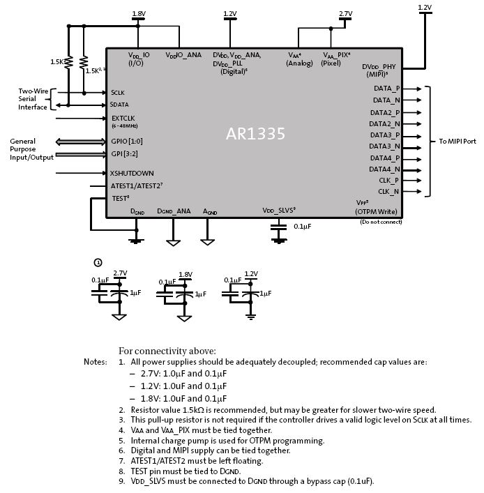 The AR1335 is a 1/3.2-inch CMOS active-pixel digital image sensor with apixel array of 4208H x 3120V. The AR1335 digital image sensor, featuresbreakthrough 1.1µm pixel technology that delivers superior low-lightimage quality through leading sensitivity, quantum efficiency and linearfull well. This allows image quality that rivals digital still cameras.With a sensor architecture focused on low power and a high Chief RayAngle (CRA) for low Z-heights, the AR1335 is ideal for smartphone andother mobile device applications. It incorporates sophisticated on-chipcamera functions such as windowing, mirroring, column and row skipmodes, and snapshot mode. It is programmable through a simple two-wireserial interface. The AR1335 sensor can generate full resolution imageat up to 30 frames per second (fps) and supports advanced video modesincluding 4K 30fps, 1080P 60fps and 720P 120fps.