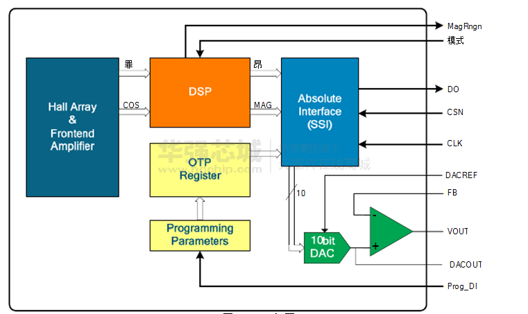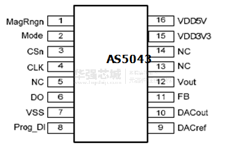 AS5043采用非接触式磁性编码器的角度进行准确测量可达360°。