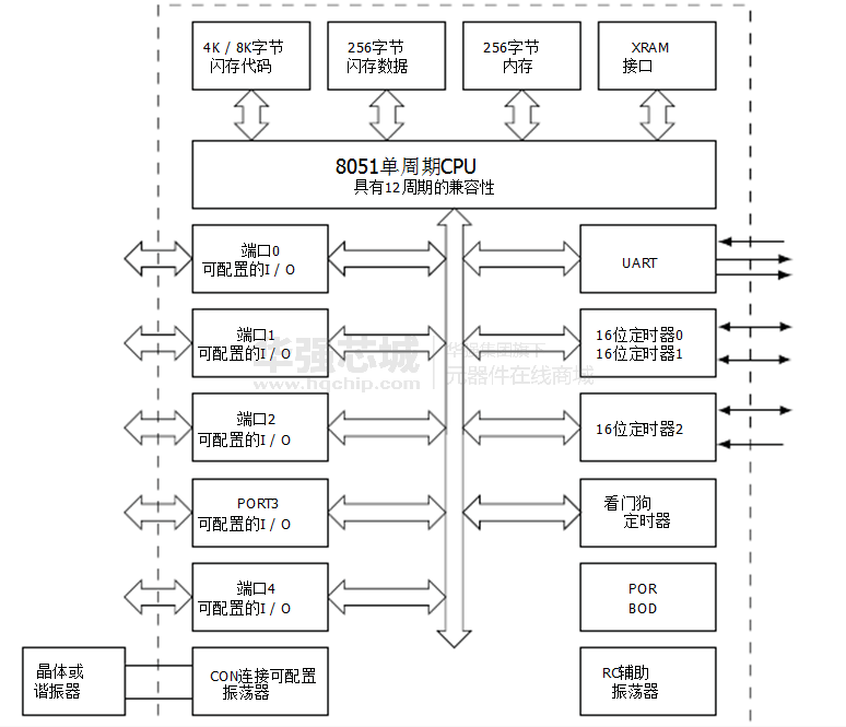 - 内部1.8432 MHz的辅助振荡器