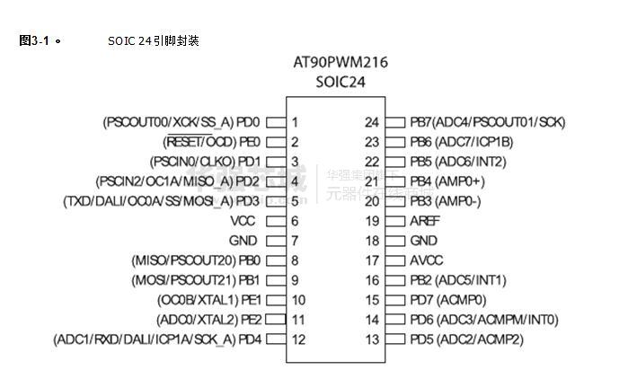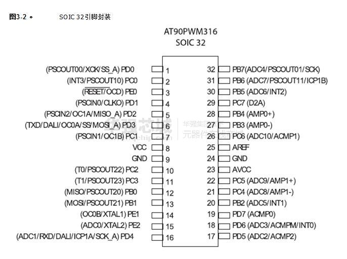 316是一款基于AVR的低功耗8位CMOS微控制器增强的RISC架构。通过在一个单一的时钟周期执行功能强大的指令,所述AT90PWM216 /