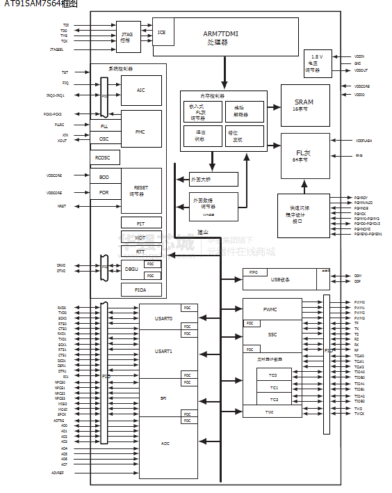 AT91SAM7S64是Atmel 32位ARM RISC 处理器小引脚数Flash微处理器家族的一员。