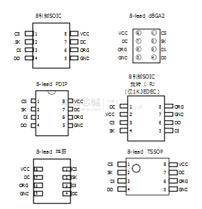 在AT93C46 / 56/ 66通过一个简单而通用的三线串行通讯访问阳离子界面。设备的操作是由主机发出的7指示控制处理器。
