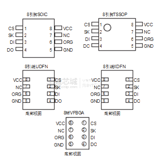 8引脚SOIC JEDEC , 8引脚TSSOP封装, 8引脚UDFN , 8引脚XDFN和8球VFBGA