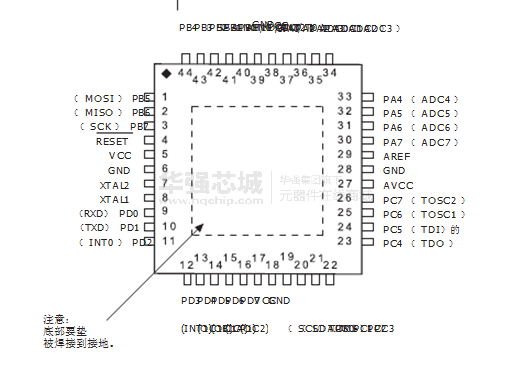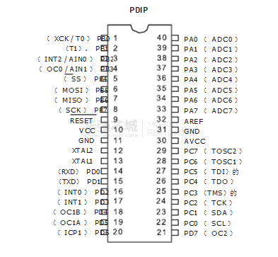 - 40引脚PDIP , 44引脚TQFP和44 - MLF垫