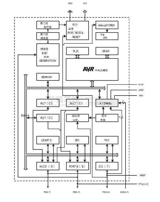 - 五种休眠模式:空闲模式, ADC噪声抑制,省电,掉电,和待机