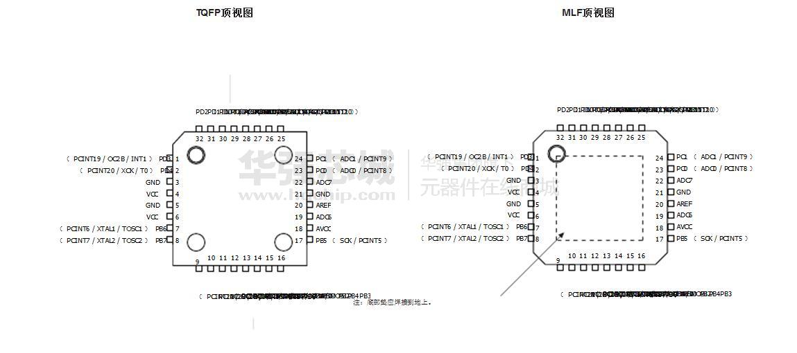 - 28引脚PDIP , 32引脚TQFP和32 - MLF垫