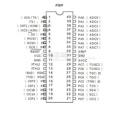 - 40引脚PDIP , 44引脚TQFP和44 - QFN垫/ MLF