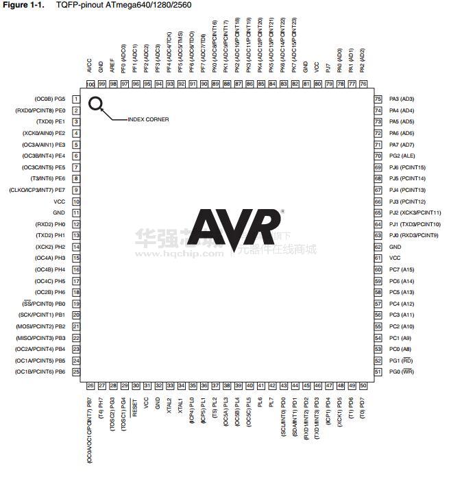 - 100引脚TQFP , 100球CBGA ( ATmega640 /二千五百六十○分之一千二百八)