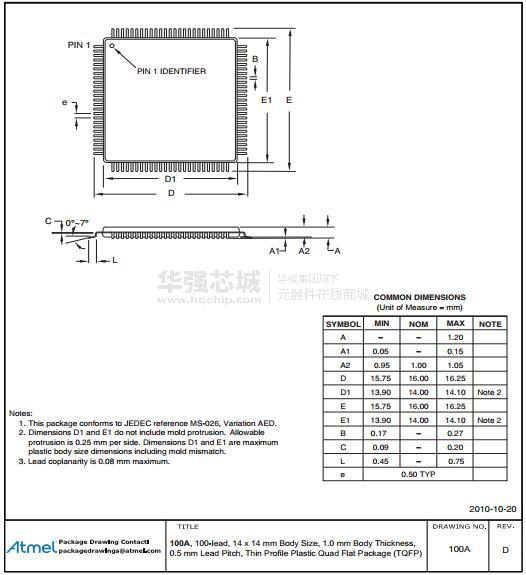 型号:ATMEGA2561-16AU_SL425