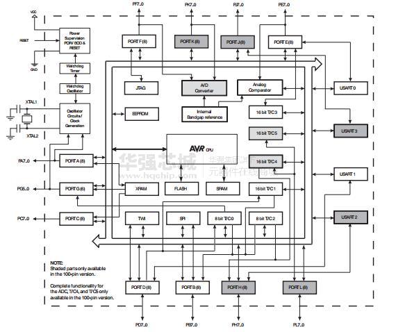 - 六个睡眠模式:空闲模式, ADC噪声抑制,省电,掉电,待机,和扩展Standby