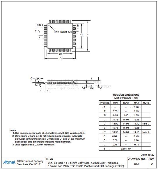 - 64 - 垫QFN / MLF , 64引脚TQFP ( ATmega1281 / 2561 )