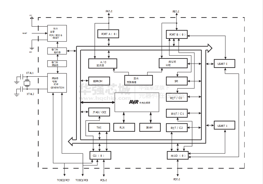 - 六个睡眠模式:空闲模式, ADC噪声抑制,省电,掉电,待机和