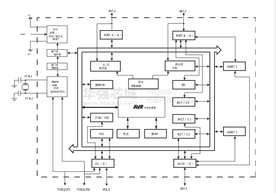 - 六个睡眠模式:空闲模式, ADC噪声抑制,省电,掉电,待机