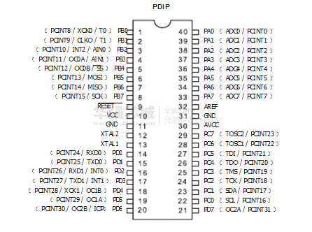 - 40引脚PDIP , 44引脚TQFP和44 - QFN垫/ MLF
