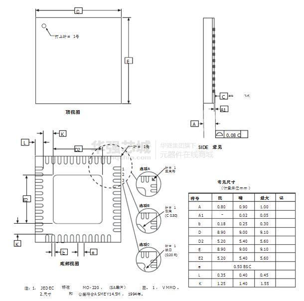 - 64引脚TQFP封装, 64 - QFN垫/ MLF和100引脚TQFP