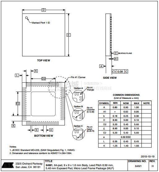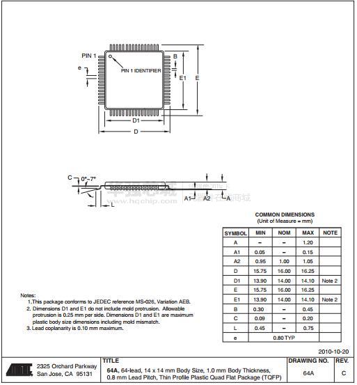 - 64引脚TQFP封装, 64 - QFN垫/ MLF和100引脚TQFP
