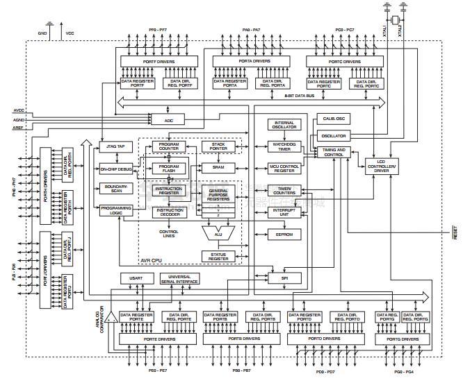 - 4 ×25段LCD驱动器( ATmega329 / ATmega649 )