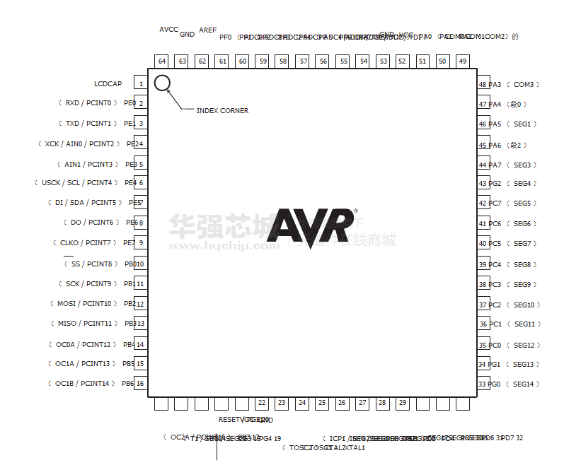 - 4 × 40段LCD驱动器( ATmega3290A / ATmega3290PA / ATmega6490A / ATmega6490P )
