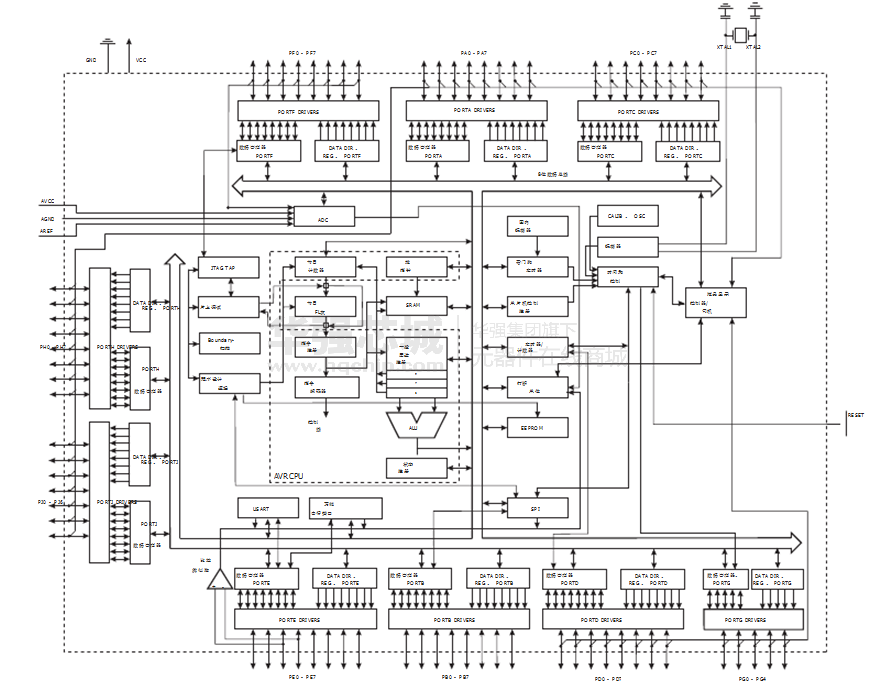 - 五种睡眠模式:空闲模式, ADC噪声抑制,省电,掉电和待机