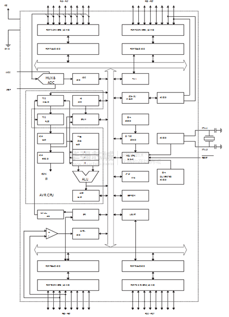 - 六个睡眠模式:空闲模式, ADC噪声抑制,省电,掉电,待机和扩展Standby