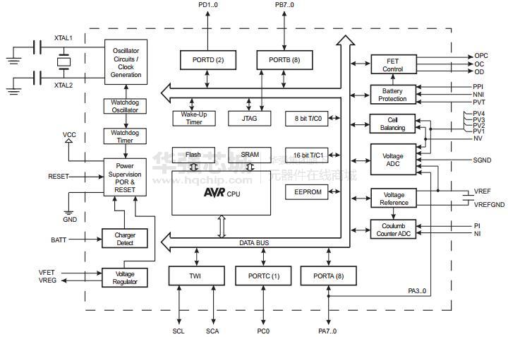 ·高分辨率库仑计数器的模数转换器为电流测量;